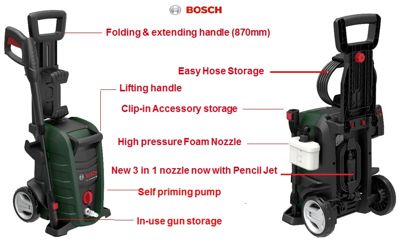 • 450-ml High-Pressure Detergent Nozzle saves time by applying soap quickly