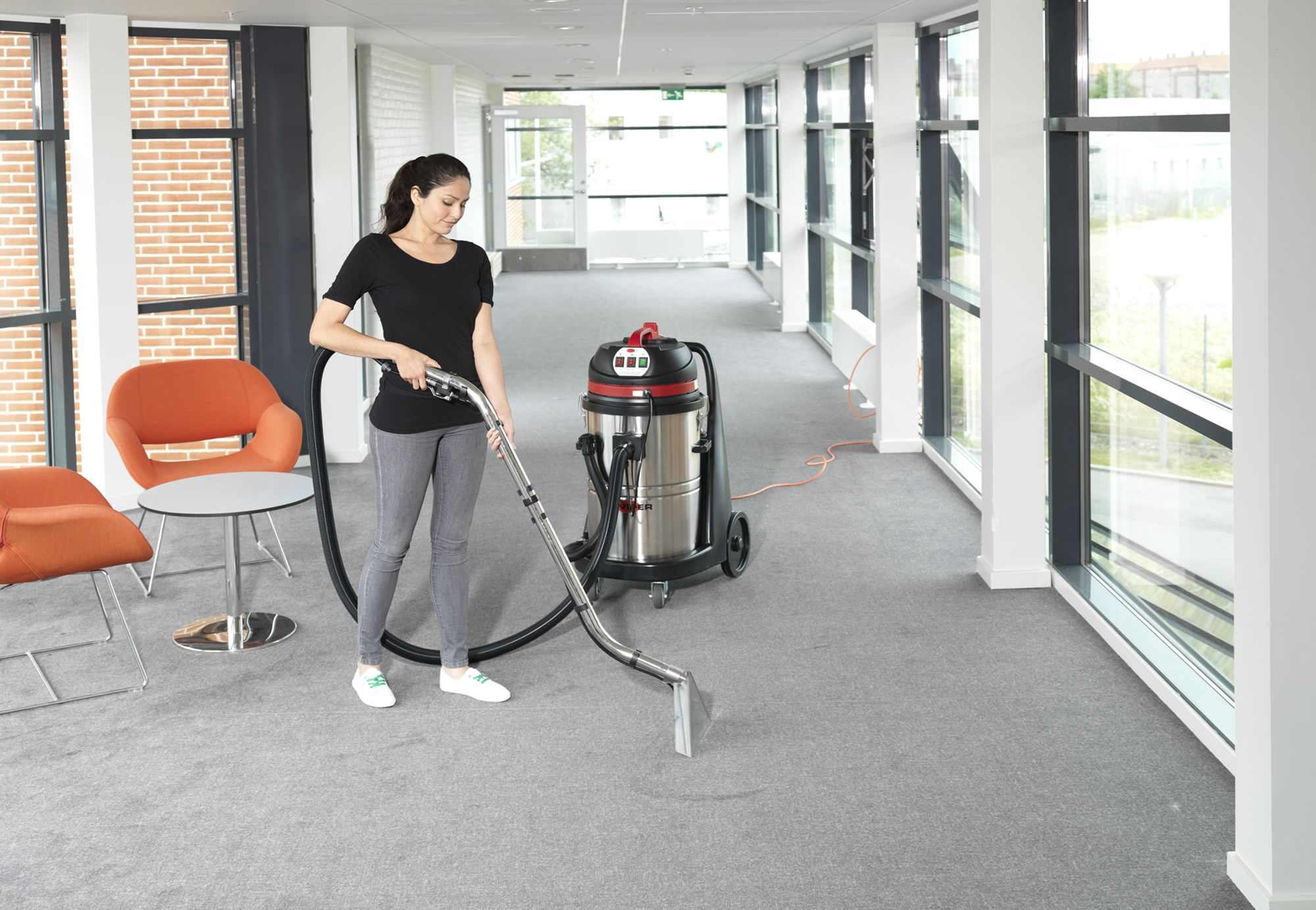 Ideally suited for cleaning in midsized carpeted areas in offices, schools, restaurants, hotels and airports.